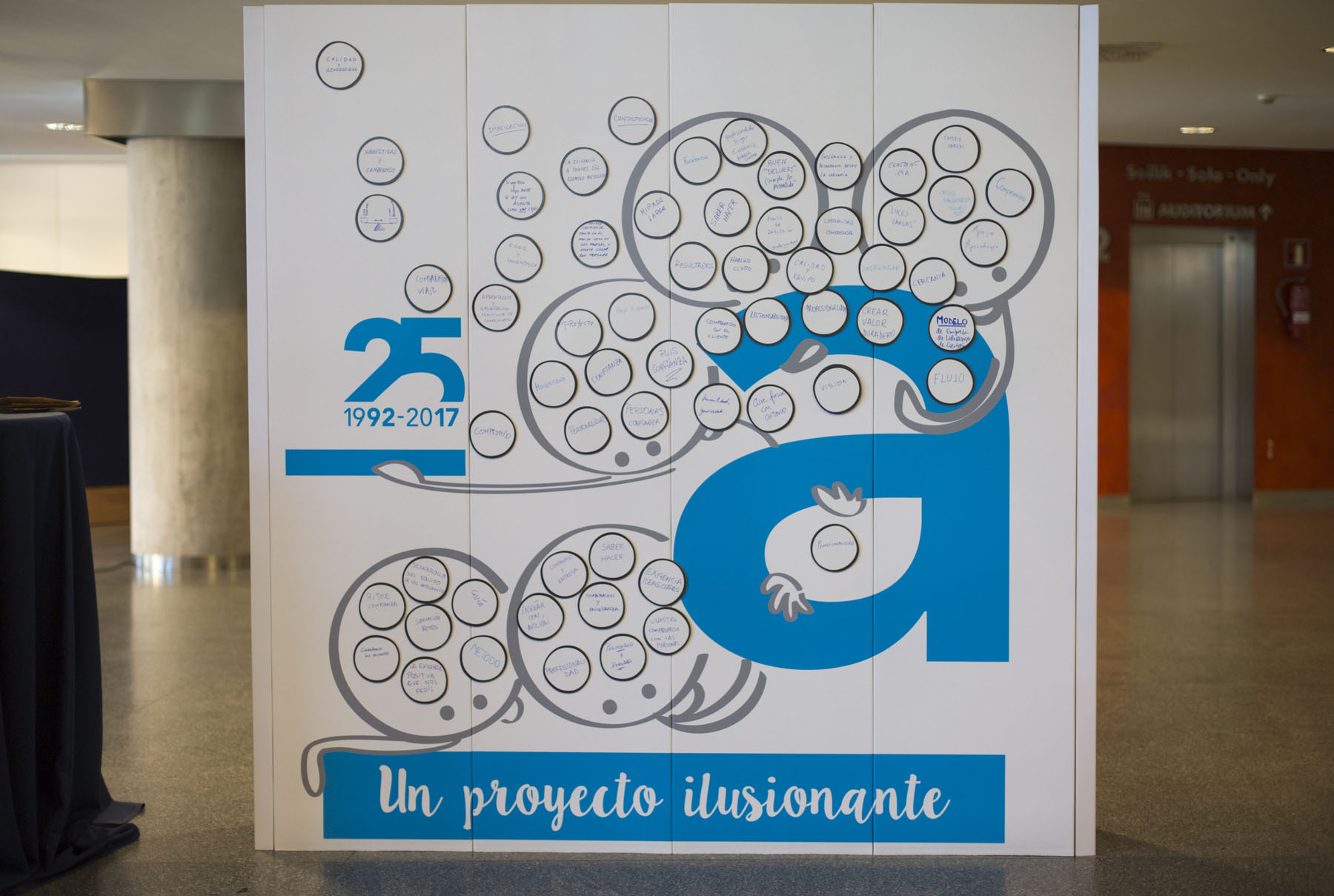 Fiel al estilo de consultoría de ASENTA, quisimos que los asistentes tomaran parte activa en la celebración, pues ellos son los verdaderos protagonistas. Para ello, les invitamos a escribir algún aspecto destacable de ASENTA, y así contribuir con sus mensajes en el panel de testimonios que colocamos en el hall del Palacio Euskalduna.